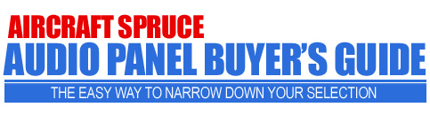 The Aircraft Spruce Audio Panel Selector is a unique web interface which allows you to select and compare audio panels by pricing and features such as weight, dimensions, and MP3 capability. Choose from the most comprehensive collection in the industry including manufacturers Garmin, PS Engineering, Bendix/King and more. Using the Buyer's Guide you can select the product which best fits your requirements. When you are ready to place your order, you can be assured that Aircraft Spruce provides the best pricing available on every product. Thank you for choosing Aircraft Spruce as your avionics supplier.