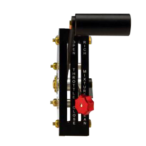These quadrants are made from aircraft quality anodized aluminum for long life and corrosion resistance. Brass friction plates are adjustable to fit individual preferences. Black anodized top plates are machined and engraved on a CNC mill to exacting tolerances for an excellent finish. side plates are laser cut insuring a perfect fit and feel. All hardware used meets AN standards. Note: All throttle qaudrants require a AN665-21R clevis with an AN393-11 clevis pin. The side mount style quadrants are intended for use in tandem airplanes such as the RV4, RV8, Stardusters, Baby Great Lakes, One Design, Acro Sport and Sonerai. The center mount style is intended for use in side-by-side aircraft such as RV's, Sonex, Thorp T18 and Pulsars. MODEL SPECIFICATIONS: