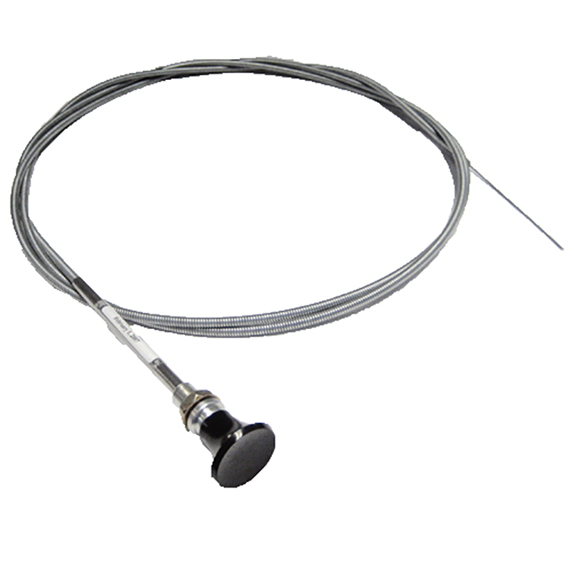 | (Solid Wire End) Simple design for push-pull operation with low friction characteristics. Has .050" dia. stainless steel wire core in flexible metal casing with polyethylene liner. May be shortened as required. Max. travel 3-1/2". Available with black or red plastic knob. Made in USA |