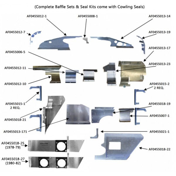 | **Powder Coat: Only color is Hammertone (Gray) Powder Coating** Complete Engine Baffle Kits for Cessna 152 (1978-79). These baffles are FAA/PMA approved, have the silicone seals attached, and arrive ready to install. Airforms is the premier manufacturer of FAA-PMA replacement baffle components. Note: