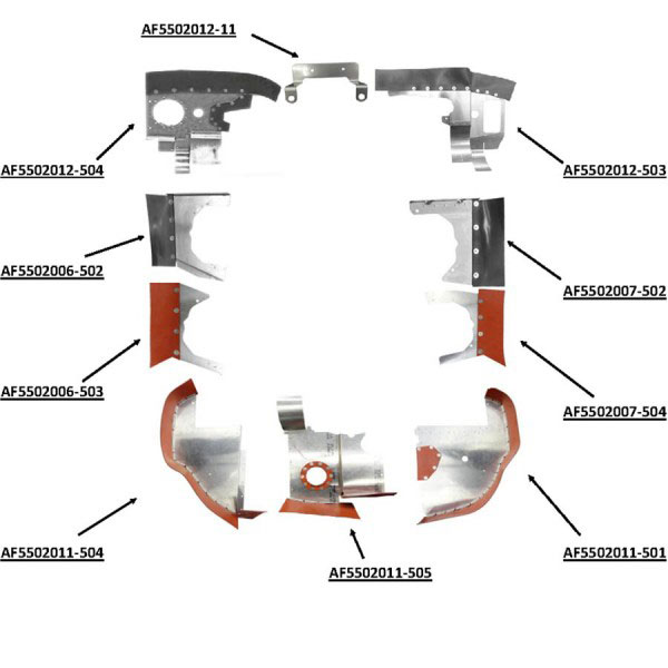 Complete Engine Baffle Components for Grumman AA-5B. These baffles are FAA/PMA approved, have the silicone seals attached, and arrive ready to install. Airforms is the premier manufacturer of FAA-PMA replacement baffle components. Note: