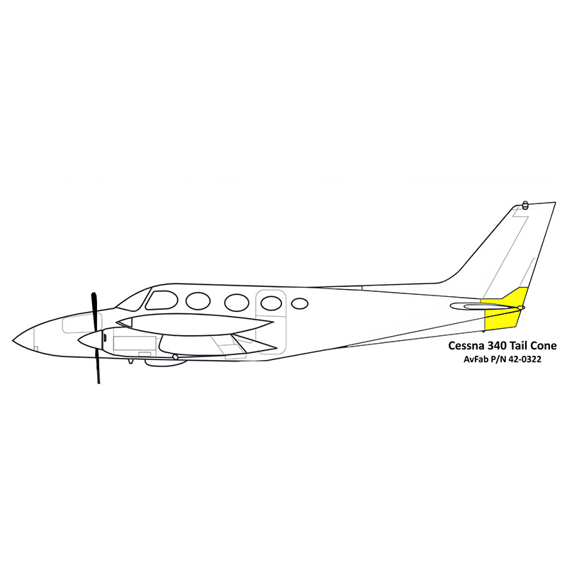 The factory tail cone was made of ABS plastic which has a tendency to deform and crack as a result of poor resistance to UV rays and solvents. If you’ve ever seen an attempt to repair ABS plastic, you’re well aware that it doesn’t lend itself to repairs of any integrity versus fiberglass that is easily repairable in the field. AvFab’s 340 Stinger Tailcone carries a 12 month warranty which covers workmanship and cracking. Federal Aviation Administration PMA (eliminating the need for field approval). The unit comes untrimmed and undrilled for a great fit. No weight and balance or airframe modifications are necessary. AvFab’s 340 Stinger Tailcone carries a 12 month warranty which covers workmanship and cracking. Replaces 5393001-1, 5312032-3, & 5331001-29  |