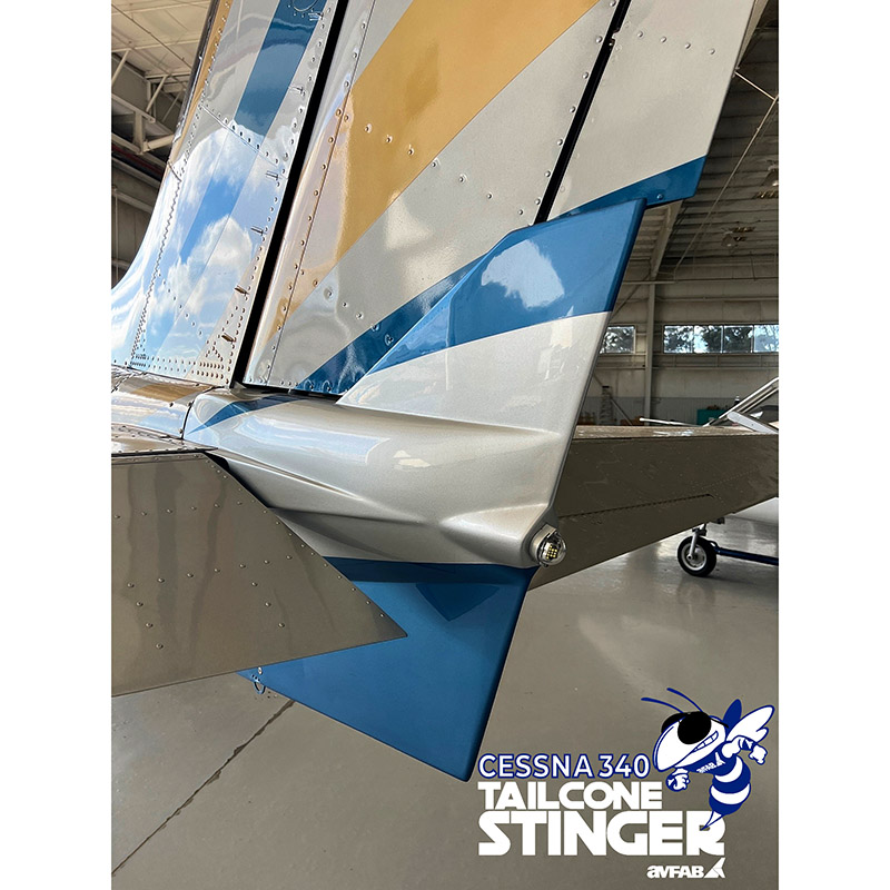 Avfab’s PMA approved fiberglass Cessna 340 Tail Cone Stinger provides customers with a robust and economical replacement option of their original Cessna tail cone. Our Tail Cone Stinger incorporates dual inspection panels in the lower portion of the ventral fin, thereby eliminating the need for removal of the tail cone at each inspection. This saves time and money annually.