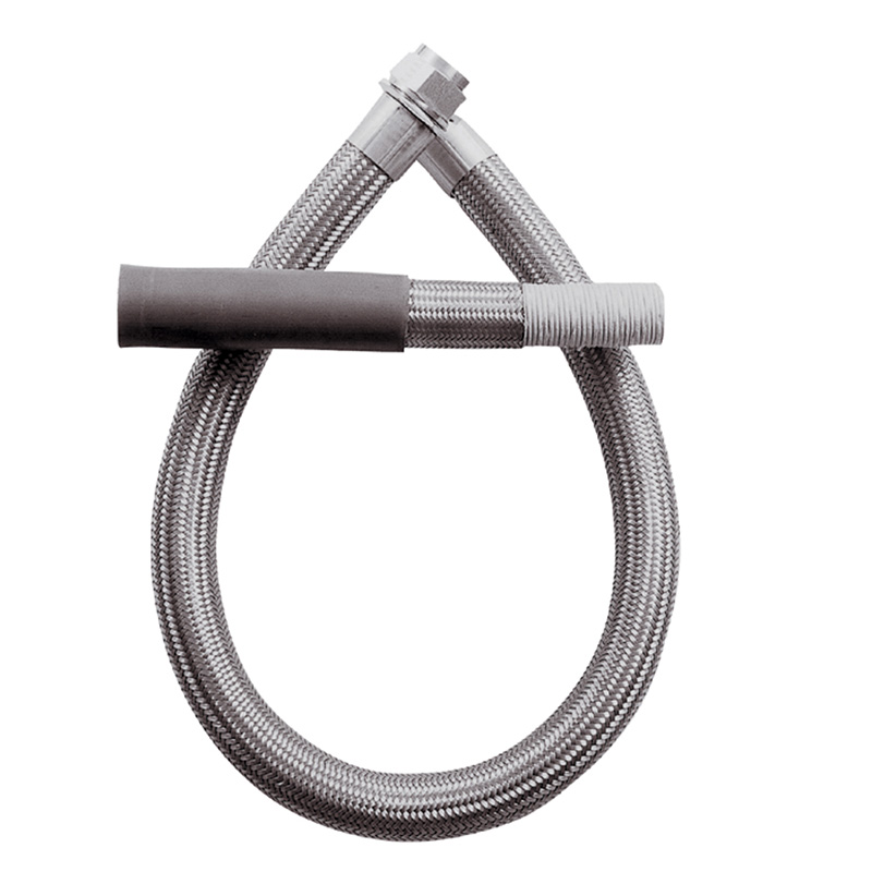 | Eaton’s AE641 series of flexible hose assemblies are designed to operate at nominal pressure below 1,000 psi (depending on size) for fuel, hydraulic, coolant and other aircraft fluids. Our hoses use a convoluted geometry for inner PTFE core tubes along with a stainless-steel wire outer reinforcing braid, making them ideal for systems with tight bend radius requirements or limited space for connections. |