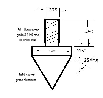 Quality Jack Points. (Very high quality jack points for most aircraft wing installations and jacks). This part was developed specifically for use on the RVs (or almost any aircraft). These little accessories can really save the day when jacking up your RV or other aircraft. Most RV owners are using a bolt or tie-down ring, not designed, or safe for the task of jacking up their aircraft safely. Many are using a plastic part that was supplied by Vans (No longer available) for this job that was prone to failure. When this part fails, the wing jack will slide off and penetrate the wing causing very serious, costly damages. These very small, lightweight (less than two oz.) aircraft grade aluminum Jack Points can make jacking your aircraft a simple and safe task. These Jack Points incorporate a grade eight 3/8”X 16 plated stud that fits the wing thread that can’t fail causing damage. The heat-treated, aircraft grade aluminum body, is de-burred, and tumbled to eliminate sharp edges and includes an attached nylon spacer to protect the wing skins painted surfaces. These parts are small and light weight so you may want to carry them in your plane should you find the need for them away from home. Sold as a pair. |