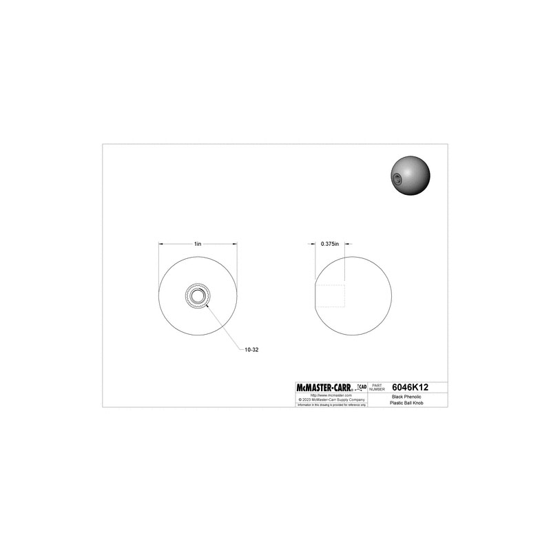 | 10-32 threaded hole, 1" diameter head Install these traditional, easy-to-grip ball knobs on a threaded stud. They're good for control levers and push-pull rods. Plastic knobs are a lightweight alternative to metal. They resist oil, grease, and solvents. Phenolic has good scratch resistance. |