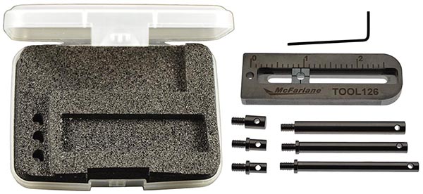 Adjustable Elevator Neutral Rigging Tool for Cessna Aircraft Save time, you'll always have the correct tool! Proper elevator rigging is necessary for full range of motion and maneuverability of the airplane. Many Cessna maintenance manuals require the fabrication of a tool to hold the yoke in the neutral position while the mechanic rigs the elevator control system. These tools utilize the holes for the control gust lock. At least 17 different sizes of rigging tools are required to cover the various Cessna aircraft. Now there is one tool to replace them all! The McFarlane Elevator Neutral Rigging Tool is adjustable from 0.4" to 2.5" and universal in design, consisting of six different pin sizes to fit your application. This tool may also be used to properly rig other makes of aircraft with similar elevator neutral rigging requirements. Features and Benefits