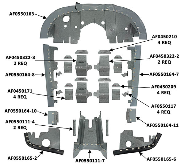 Airforms engine baffles are FAA-PMA approved for Cessna, Piper, Beech, Mooney, and Grumman6061-T6 aluminum available as bare aluminum or gray powder coat finish