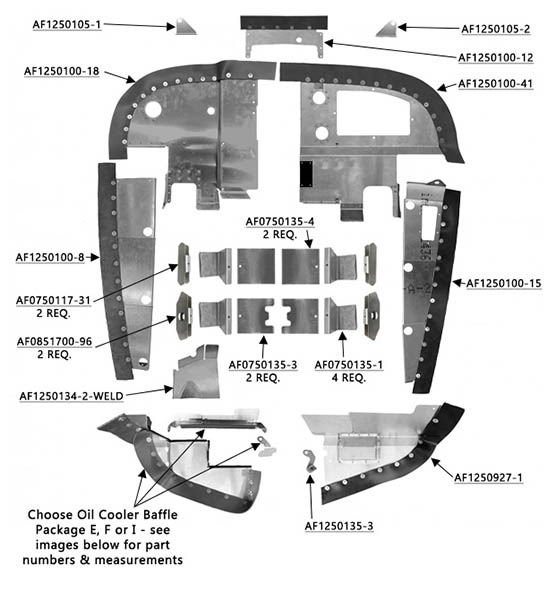 Airforms engine baffles are FAA-PMA approved for Cessna, Piper, Beech, Mooney, and Grumman6061-T6 aluminum available as bare aluminum or gray powder coat finish