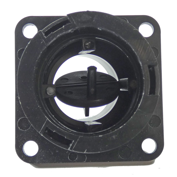 | These ball and socket air vents are injection molded T grade ABS. The vent orifice is 1" diameter, and the ball swivels 45°. The mounting flange is 2-1/8" square, and the distance between mounting hold centers is 1- 11/16". Mounts in 1.75" diameter hole & uses 1-3/4" ducting. |