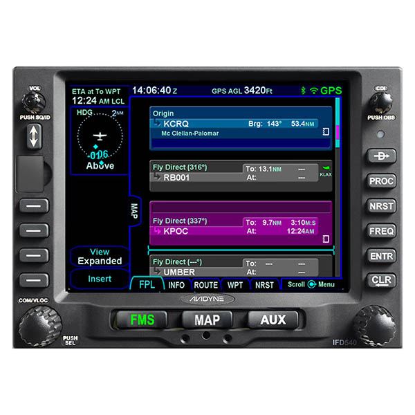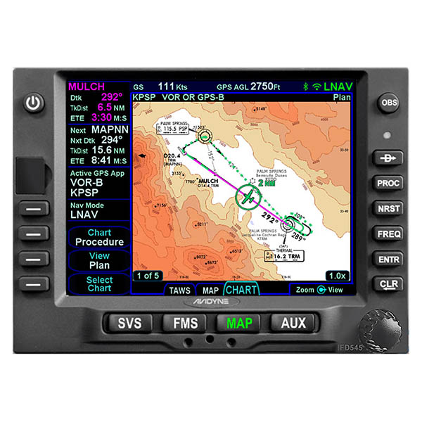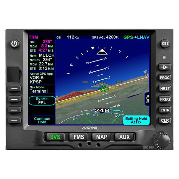 The IFD545 is Avidyne’s Premium stand-alone, panel-mounted FMS solution. The IFD545 is designed as a slide-in replacement for legacy GNS500 Series Navigators, providing SBAS/LPV capability for a wide range of legacy aircraft. The IFD545 shares the same FMS feature set as the IFD550 (minus the VHF radio), including its integrated Attitude Reference System (ARS) with the added benefit of 3-dimensional “ego-centric/ out-the window” Synthetic Vision views. Thanks to and Dynamic SVS, you can “see” all your flight information laid out in front of you, giving you unprecedented situational awareness. Synthetic Vision shows terrain in 3D with hazard alerting, obstacles, and traffic. Everything you need to see on a bright, easy-to-view 5.7” touchscreen. As with all of our IFDs, the IFD545 includes many great features that make operation much easier including FMS Preview, which lets you easily create, upload and review your flight plans visually with changes shown on the screen before selection. And with our patented GeoFill™, in-flight changes are a snap because the IFD545 predicts your next entry based on your location, not the sequence in the database. |