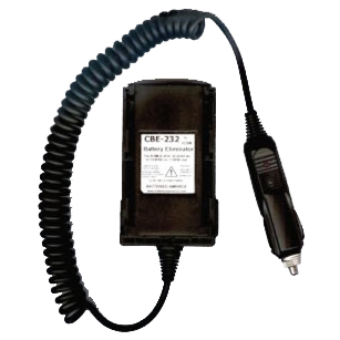 The CBE-232 is a battery eliminator for ICOM radios. It enables Hi-Watt operation from a 12-13.8VDC power source (DC socket, portable 12V battery). Has Cig. Plug at one end, heavy-duty coiled cord, and Battery "shell" at other end. Clips onto radio just like a battery would. The battery shell contains circuitry which regulates voltage and current to the radio, as well as RF noise shielding. |
