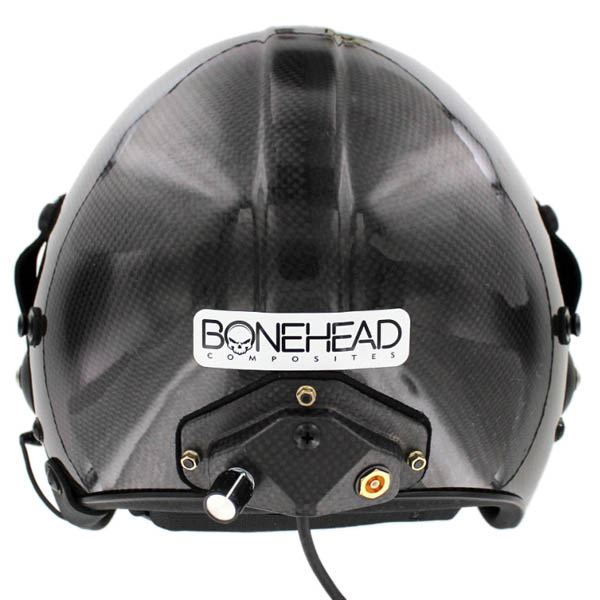 The PilotX is Bonehead Composites' flight helmet that addresses the need for a low-profile communication helmet tailored to aircraft with limited headroom. Constructed of vacuum molded carbon fiber and fiberglass, this lite weight helmet packs a punch when it comes to completing the mission. The shell features a quick release chin strap buckle and adjustable strap, nape strap, visor snaps, and fastened ABS ear cups with comfort foam seals for sound attenuation. A Velcro fastened top liner, adjustable with foam shims, completes the fitting. The total weight of the helmet is 2.3 pounds. The PilotX comes standard with the communication package, and can be customized to each specific pilot's needs, including: