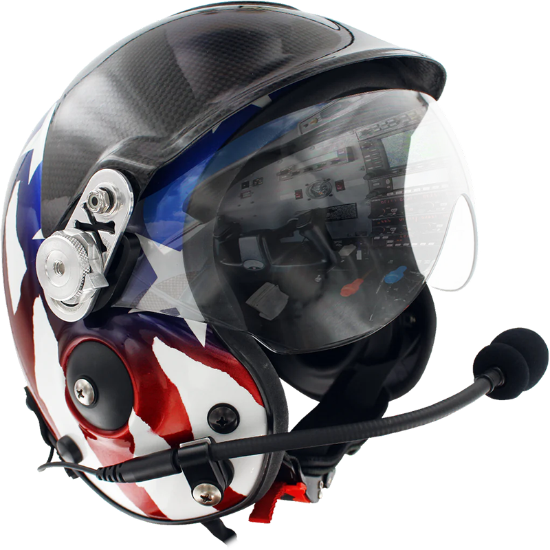 The Aries features an integrated visor, which opens and closes into the shell of the helmet with a single-handed turn of the knob. The Aries addresses the need for a low-profile communication helmet tailored to aircraft with limited headroom. Constructed of vacuum molded carbon fiber and fiberglass, this lite weight helmet packs a punch when it comes to completing the mission. The Aries flight helmet is suitable for both fixed-wing and rotor-wing aircraft.