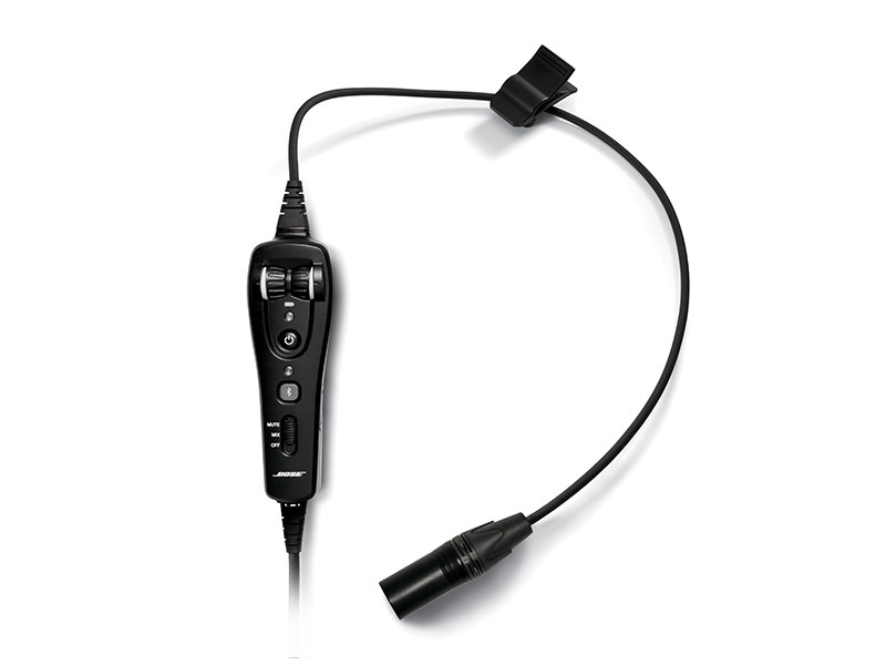 | This flex-powered straight cable features an electret microphone with a Bluetooth audio and communications interface. When aircraft power is detected, the headset automatically turns on and switches from battery power to aircraft power. |