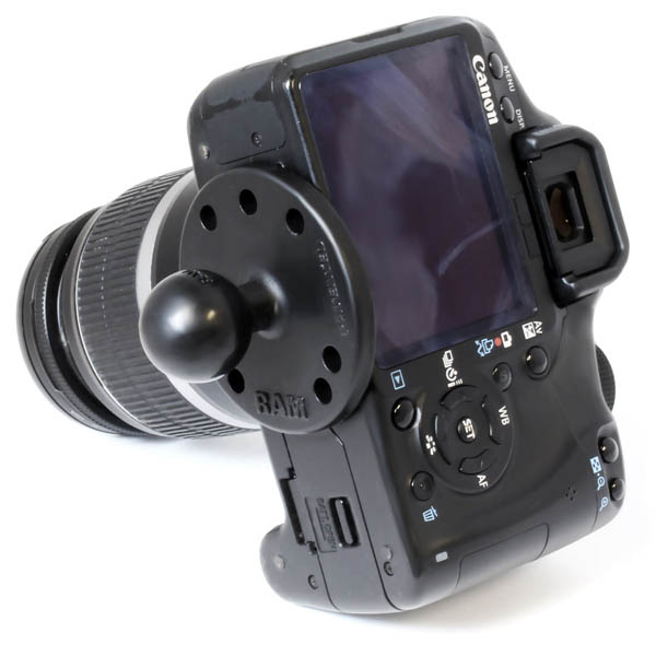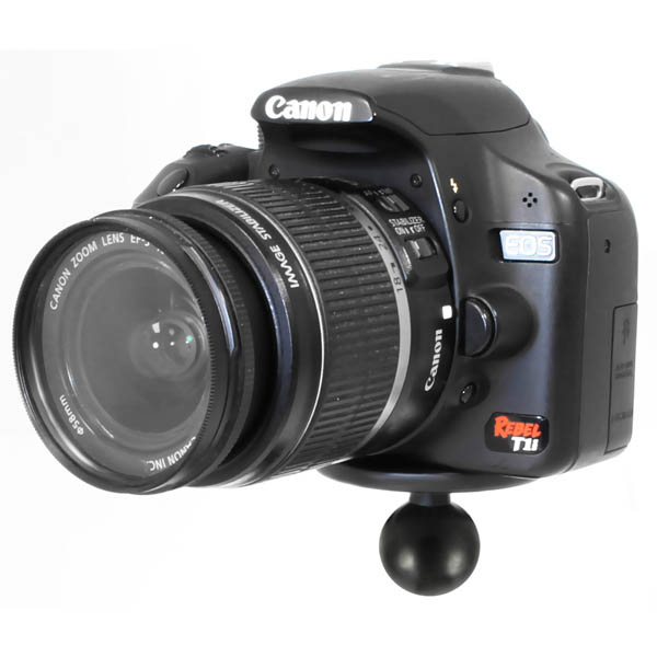 | The RAM-B-202AU, universal camera and camcorder base, consists of a 1" diameter rubber ball, connected to a 2.5" diameter round plate with 1/4"-20 camera thread. The round plate provides extra support and stability for cameras that rest on top of it. The male 1/4"-20 threaded steel stud will connect to any standard female thread found on camcorders and digital cameras. Compatible Cameras: Contour GPS Contour HD Gobandit GPS-HD GoPro HD Helmet HERO GoPro HD Motorsports HERO GoPro HD Surf HERO GoPro Helmet HERO Wide GoPro Motorsports HERO GoPro Motorsports HERO Wide GoPro RC HERO GoPro Surf Hero GoPro Wide HERO |