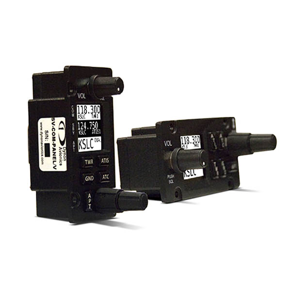| By integrating deeply with your Dynon SkyView system, the SkyView COM Radio tunes frequencies by airport and station type - rather than by spinning in a number - at the touch of a button. You can also send frequencies over from the SkyView map airport info pages. For when you're feeling nostalgic (or are following ATC instructions), a dual concentric knob lets you spin in frequencies "the old fashioned way." SkyView will identify the airport and station type as you tune to help ensure you're talking to the right radio station. The SV-COM-X83 adds 8.33 kHz channel spacing. |