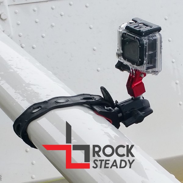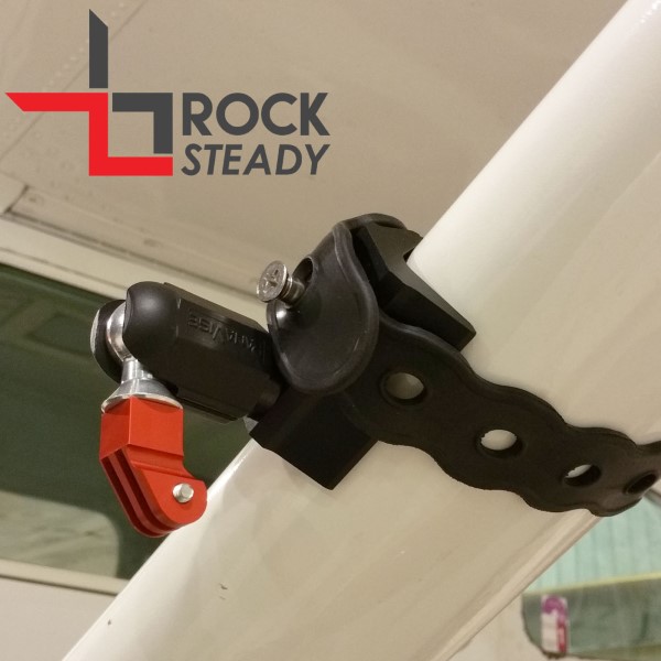 The Rock Steady GoPro style ball mount is the durable and versatile low profile design that you have been looking for. This quality all metal mount will not move, bend, or fail, unlike plastic mounts. The metal GoPro adapter is compatible with any GoPro style camera. This unique Gopro adapter allows over 180 degrees of adjustment unlike most GoPro fork tripod adapters. The knuckle clamp attaches to any Rock Steady base allowing 360 degrees of adjustment. The knuckle locks your camera into any position with a hex wrench, or by hand with an included T-handle screw. Buy multiple Rock Steady bases to add numerous quick change mounting locations at an affordable price. Compatible with GoPro, Hero 2, Hero 3 & 3+, Hero 4, Hero 5 and Garmin Virb X and Virb XE or any Go Pro style camera. The Rock Steady Universal Strut Base is a quality all metal machined aluminum base. The strut base fits any size aircraft spreader bar, bi-plane strut, or wing strut from a J-3 to a Caravan. The simple clean design straps firmly to your wing strut without using bulky blocks or bolts. The Rubber Strap Kit uses a 19″ universal rubber strap that fits most any strut. With adjustment holes every 1.25 inches, you simply start on a hole that gives you just enough strap to reach around the strut and tighten on the end. The temporary strap allows your camera mount to be quickly taken on and off any strut. FAA friendly temporary. |