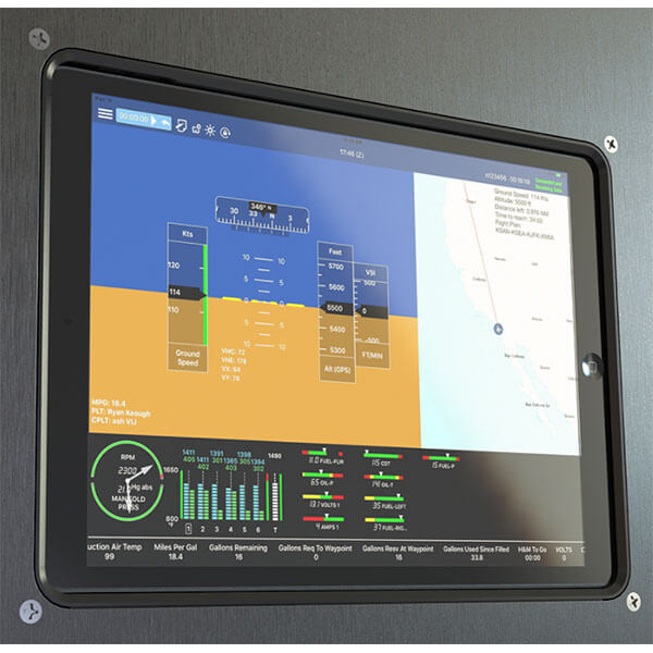 The smartPanel Mount for Apple iPad Pro 10.5-in is a flush mounting system to easily dock and seamlessly integrate your existing iPad into your aircraft instrument panel -- giving it a clean, professional appearance in an easy to view position! Once installed, the smartPanel mount allows your iPad to be docked in seconds, fully connected to power and audio with built-in cable ports. Removal is just as easy -- just slide, push, and remove! The iPad Pro 10.5-in model is becoming very popular in aviation with ample screen size for viewing and a bright Retina display for superior visibility in even the brightest of cockpits. The smartPanel Mount for iPad Pro 10.5-in brings that functionality and performance within easy reach and sight, beautifully transforming your new or existing panel. Power supplies may be installed as a minor alteration. Please refer to the document link for the Guardian Avionics NORSEE Letter of Authorization. Designed with General Aviation in mind. The smartPanel Mount for iPad Pro 10.5-in was designed by aerospace engineers to perform in the unique environment of the cockpit. The spring actuated mounting cradle securely holds the iPad in place during the roughest of turbulence. The clean, flush mount has a shallow chassis allowing it to be easily installed in even the smallest of instrument panels. Built-in ports for the Apple Lightning plug and a 3.5mm audio cable help keep cables safely and securely positioned behind the panel, allowing you the ability to connect to power, data, and audio without the cord mess. Keep it cool. As they are being used, iPads generate heat that can affect performance -- resulting in a high-temperature shut down when you might need it most! Pilots have found this out the hard way when using a temporary mounting solution like Velcro to attach their unit to the instrument panel. The smartPanel Mount was designed with cooling in mind. Each mount has a built-in Fan Blower (14 or 28V) capable of supplying 4.6 Cubic feet per minute of Air and because it is powered by the aircraft you will not run out of battery. Each panel mounting tray features cooling channels to circulate Fan Blower air behind your iPad to keep it cool even under the heaviest of use. Simple Installation. The smartPanel Mount is designed for easy installation in your panel. Each durable molded ABS plastic unit is self-contained and mounts with only four screws. The installation drawings give you the exact panel cutout details and screw positions in either PDF or AutoCAD DXF for precise cuts. Mount in Automobiles, Boats, RVs, and Displays Too! Though the smartPanel Mount for iPad Pro was designed for use in aircraft, the durable construction and well-designed flush mount can be used easily for a wide variety of applications -- wherever there is a flat surface! |
