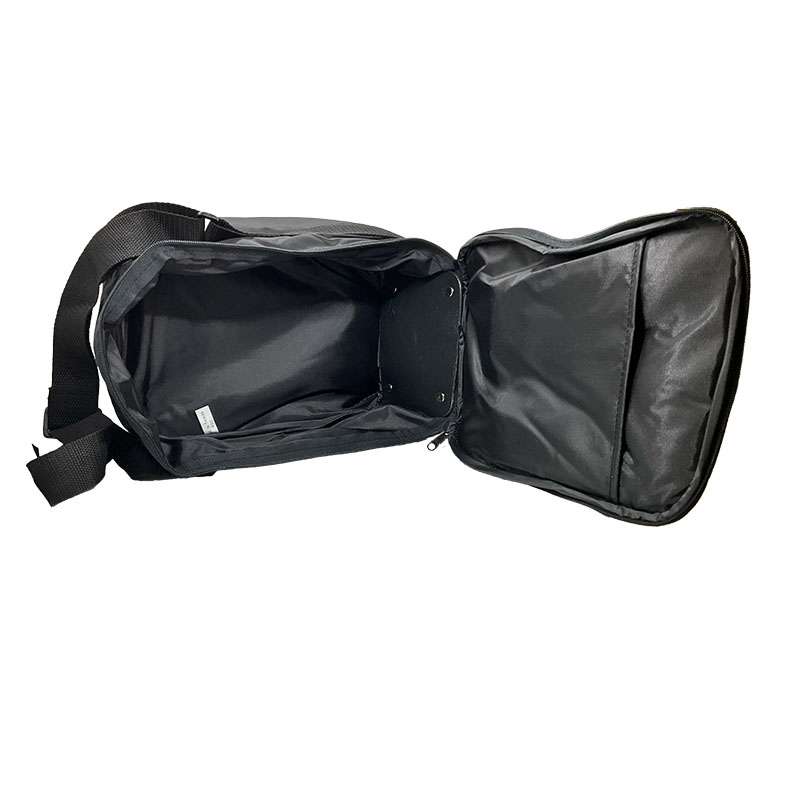 | This padded carry bag provides inexpensive insurance against headset damage. Featuring dual zipper openings, inside pocket sectionals, computers, glasses, etc. Bag is constructed of black waterproof nylon with carry handle. |