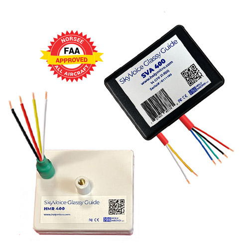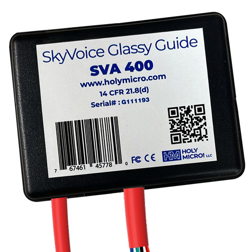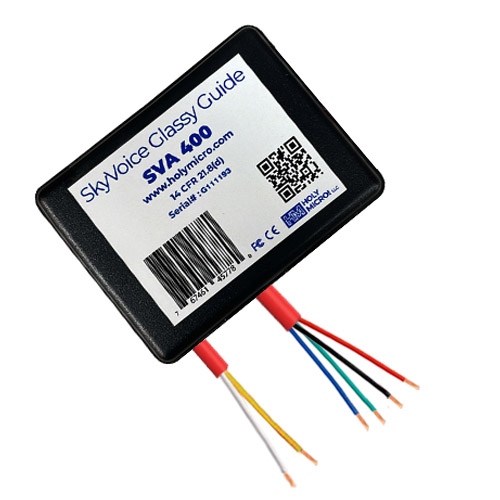 | The SkyVoice glassy guide 400 (includes SVA 400 unit and HMR 400 unit) from Holy Micro! LLC, is a 400 ft take-off and landing height announcer, accurate over water and land. |