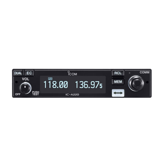 Icom’s A220 panel mount transceiver is a popular fit with experimental and light sport pilots. The TSO approved version will work for all certified part 23 aircraft. This ground to air transceiver has the capability to work on both 8.33 kHz and 25 kHz channel spacing frequencies. It features the brightest OLED (Organic Light Emitting Diode) display on the market offering many advantages in brightness, vividness, high contrast, wide viewing angle and response time compared to a conventional display. The A220 also features a built in 2 station intercom, 12 or 24 volt compatible, automatic squelch and GPS memory function. FAA TSO certification The A220 TSO version meets RTCA-160G requirements for use in strict environments. This A220 version can be used for a primary VHF radio in general aviation (part 23) class aircraft. The A220 TSO version is also accepted for ETSO approval under the TSO/ETSO reciprocal acceptance policy.