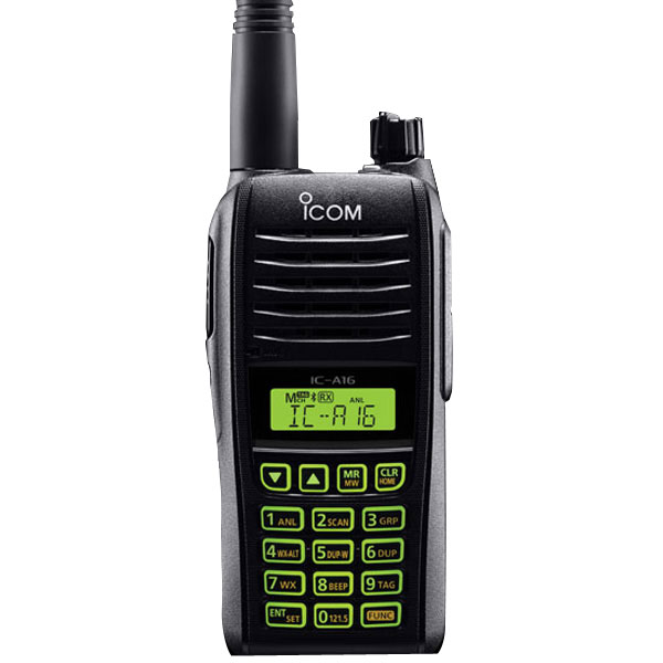 | The A16 and the A16B are built tough and rugged like all Icom radios. It is the smallest radio with the loudest audio on the market, featuring 1500 mW of powerful clear audio. Packed with 6 watts of power for longer range, the A16 is also waterproof to IP67 standards. The A16 is the ideal flight companion for the student pilot, for ground crew with one hand operation on the flight line, or as a back up in your ditch bag. Its 2400mAh Li-ion battery lasts over 17 hours, and the radio includes a sit-in rapid charger. |