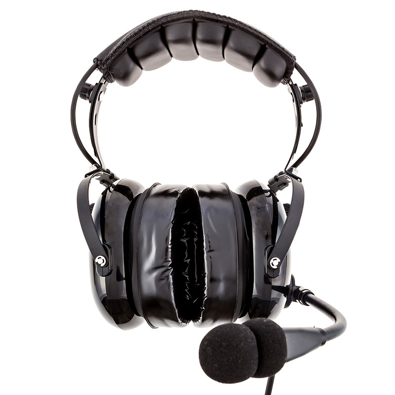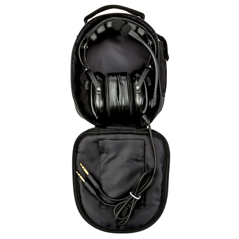 KA-1 pilot headset comes with an extra microphone muff and a durable carrying case that includes a padded interior for headset protection.