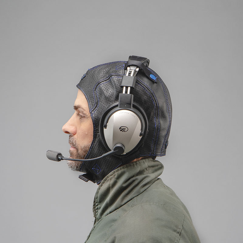 | Our premiere open cockpit flight cap is made from premium-grade leather with strategically placed perforations to provide ventilation. Includes a FIDLOCK™ buckle system and snap button straps for securing communications equipment while in flight. |
