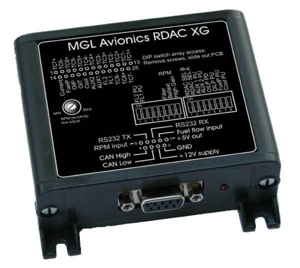 The RDAC XG is a compact version of the RDAC XF Engine monitor module and can be used used with Xtreme, Odyssey G2, Voyager G2 and all iEFIS instruments.