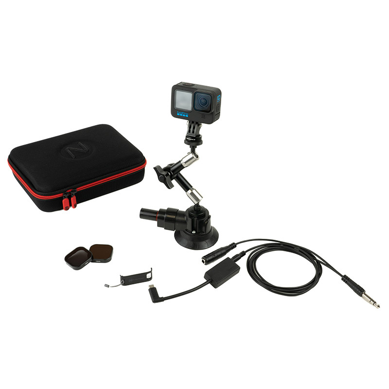 Designed for the GoPro HERO13 Black, this kit incorporates the best camera accessories available. Our Propeller Filter Kit includes two filters: one for standard light (ND8) and an additional one for bright light (ND16). Mount it inside your cockpit to capture your flight without distracting propeller distortion ruining your video! Also found in our Ultimate Action Camera Cockpit Mounting Kit, this vacuum suction cup has industrial-strength holding power, and the fully-articulating stainless steel arm allows complete freedom to aim the camera in any direction. This suction cup and stainless steel arm combo is designed and tested for use inside the aircraft. Our Audio Solution for GoPro HERO 13 Black combines our 6-foot-long Digital Audio Recording Cable and GoPro's 3.5mm Mic Adapter to allow you to record cockpit audio while simultaneously powering your camera. In order to connect an audio cable to the GoPro HERO13 Black, the battery door must be removed, which exposes the battery. Our kit includes a replacement door that covers the battery while allowing the cable to be plugged in through a custom cutout. Our custom case provides a convenient place to store and transport all of your GoPro accessories. COMPATIBLE WITH: