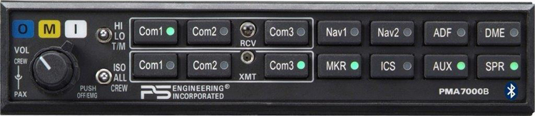 FAA TSO’d for Certified Aircraft The PMA7000BT is a direct slide-in replace to the PMA7000 series as well as UPS-AT SL-15 and KMA-28. This means that all that is required to replace your old audio panel with this brand new panel is a 3/32 Allen Wrench! The PMA7000BT is a hi-fi stereo intercom system and incorporates our renown 6-place IntelliVox® automatic Voice Operated Relay (VOX) intercom system. Adjusting a squelch circuit is a thing of the past. And with over 18 years of field experience, find out just how easy it is to forget you are even using an intercom, it just works! No more clipping or missed syllables. And the Bluetooth(R) Interface does allow music streaming as well as interconnect to an iPhone, iPad, iPod, or any other Bluetooth(R) enabled device that has the Handsfree or A2DP profile. The PMA7000BT provide 3-com capability with the option to easily convert Com 3 to a full duplex cellular telephone interface. It also has our pioneered "Split Mode". This allows the pilot to be on Com 1 while the copilot is on Com 2, freeing up the pilot to work with ATC while the copilot gets weather information or finds out just where the lowest fuel cost is on the field while still in the air. |