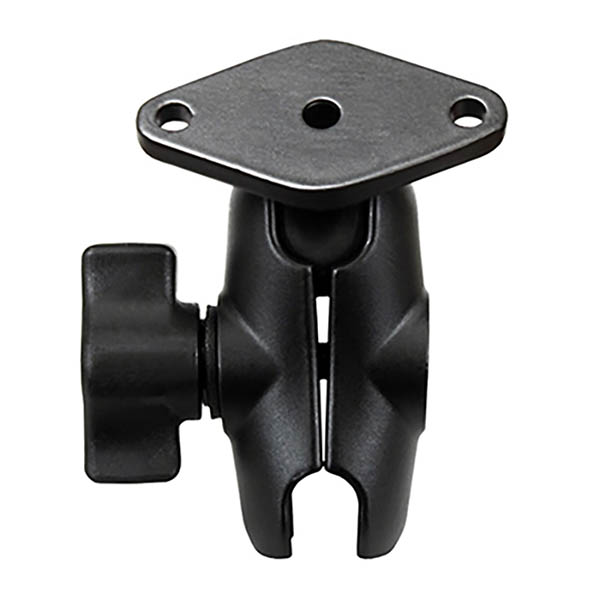| The RAM-B-103-A-238U consists of a diamond base and SHORT double socket arm that will accept 1" ball bases. The diamond base measures 2.43" x 1.31" and contain two holes 1.912" from center to center, positioned at both ends of the diamond base. The hole pattern found on the diamond base will connect to many RAM cradles, as well as third party cradles including mounts with the industry standard AMPS hole pattern. Designed into the mount is a 1" diameter patented rubber ball and socket system with adjustment points at both ends of the socket arm; this with a twist of the arm knob allows for you to maneuver the mount to your optimum viewing position. |
