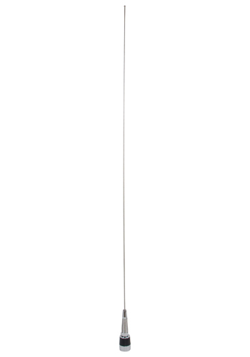 ANTENNA/VHF communications, fixed Mount, 118-137 MHz, spring loaded base, includes: 17' cable with unattached BNC Connector. Antenna with fixed mount base; 17' cable with "BNC" connector not attached. The AV-7 is a high performance vehicular antenna for use on all surface vehicles where communications on the aircraft VHF COM frequency band is required. Heavy duty constructed with a tapered 17-7PH stainless steel whip and spring mount. All exposed fittings are chrome-plated brass or stainless steel. Mounting is easily achieved on rooftop, cowl, fender or other suitable location via a fixed "NMO" base. The antenna comes pre-tuned to operate in the aircraft VHF COM frequency band of 118-137 MHz. |