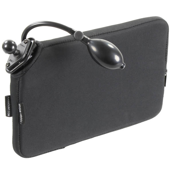 | The Tough-Wedge™ is a mount that fits in the gap between the vehicle seat and center console or potentially a center seat. This allows for easy access and operation of a mobile device. The Tough-Wedge™ can also be used for back-seat applications by inserted into the pockets located on the back of the front seats. For capturing video on the go, place the Tough-Wedge™ in your backpack with a RAM camera mount. The included diamond adapter contains the industry standard AMPS hole pattern that allows attachment to a variety of RAM mounts. Hardware included to attach the Tough-Wedge™ to the mount. The 1" diamond ball base is compatible with all RAM-B size single and double socket arms. Included in this kit is an innovative Expansion Pouch accessory for the RAM Tough-Wedge™. This optional accessory is designed to add stability to your wedge mount for vehicle with a larger gap between seats. The Expansion Pouch fits inside the Tough-Wedge™ sleeve and is then inflated with the hand pump to the desired level, ensuring your device stays firmly in place. |