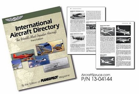 Whether you're a pilot or an aviation enthusiast, the International Aircraft Directory from the editors of Plane & Pilot magazine is sure to have all you're looking for in an easy-to-use reference tool for checking facts about a particular model, identifying unusual aircraft, and recognizing trends in airplane design. Now in its third edition, the book features detailed descriptions and photographs of more than 500 airplanes from around the world, including single-engine, multi-engine, jet, classic antique, homebuilts, kit-builts, sailplanes, motorgliders, warbirds, and military aircraft flown by civilian pilots. The directory lists airframe and powerpalnt information and historical facts as well as standard data and performance specifications such as a horsephower thrust, weight, speed, and range. The 304-page softcover book. |