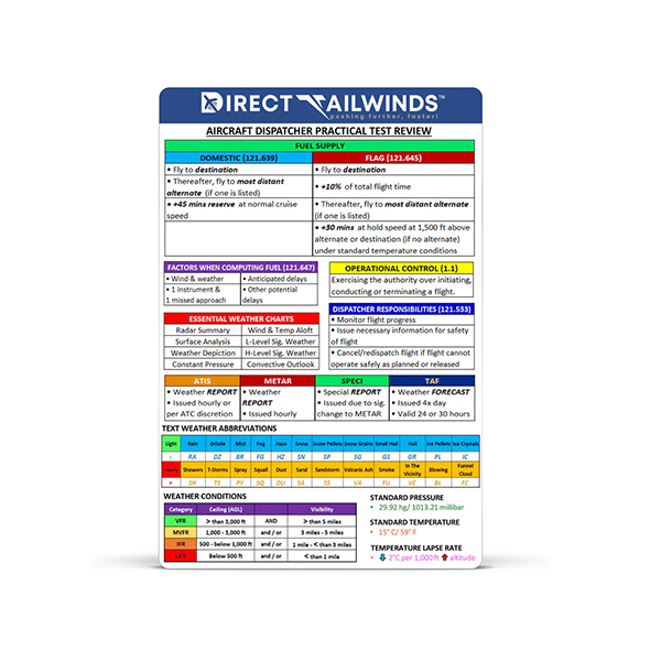 Enhance your study experience and excel in your oral and practical exams with our innovative FAR-FC Aircraft Dispatcher Flags and Review Card!