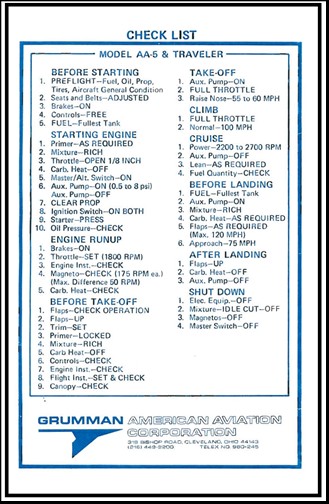 | Grumman AA-5 & Traveler 1972-74 Owner's Manual. |