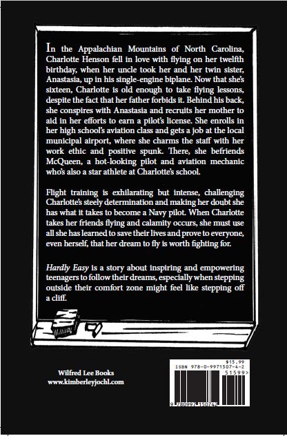 Hardly Easy is a story about inspiring and empowering teenagers to follow their dreams, especially when stepping outside their comfort zone might feel like stepping off a cliff. In the Appalachian Mountains of North Carolina, Charlotte Henson fell in love with flying on her twelfth birthday, when her uncle took her and her twin sister, Anastasia, up in his single-engine biplane. Now that she's sixteen, Charlotte is old enough to take flying lessons, despite the fact that her father forbids it. Behind his back, she conspires with Anastasia and recruits her mother to aid in her efforts to earn a pilot's license. She enrolls in her high school's aviation class and gets a job at the local municipal airport, where she charms the staff with her work ethic and positive spunk. There, she befriends McQueen, a hot-looking pilot and aviation mechanic who's also a star athlete at Charlotte's school. Flight training is exhilarating but intense, challenging Charlotte's steely determination and making her doubt she has what it takes to become a Navy pilot. When Charlotte takes her friends flying and calamity occurs, she must use all she has learned to save their lives and prove to everyone, even herself, that her dream to fly is worth fighting for. |