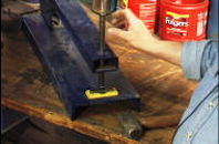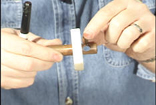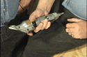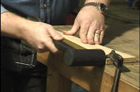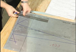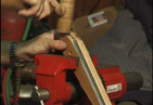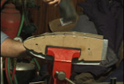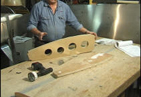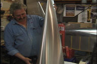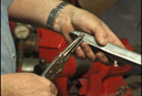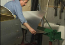 Explaining basics of rib forms Forming rib in vise Forming rib tip in vise Cutting horn from thick stock Forming the nose radius Examine spring back contour Demo of sanding block Forming rib on bench Scotch-brite power deburring Completed set of rudder parts Transferring pattern to metal Homemade edge marking tool Band saw for rib forms Demonstrating air shears Mounting form block Solid riveting tool Fluting pliers Creating the nose skin Bending in the brake Almost complete nose skin Creating lightening holes Scoring knife for sheet cuts Completed tip rib Reviewing the plans
