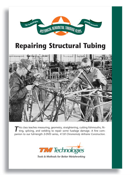 | This class teaches measuring, geometry, straightening, cutting fishmouths, fitting, splicing, and welding to repair some fuselage damage. A fine companion to our full-length 2-DVD series, 4130 Chromemoly Airframe Construction. |