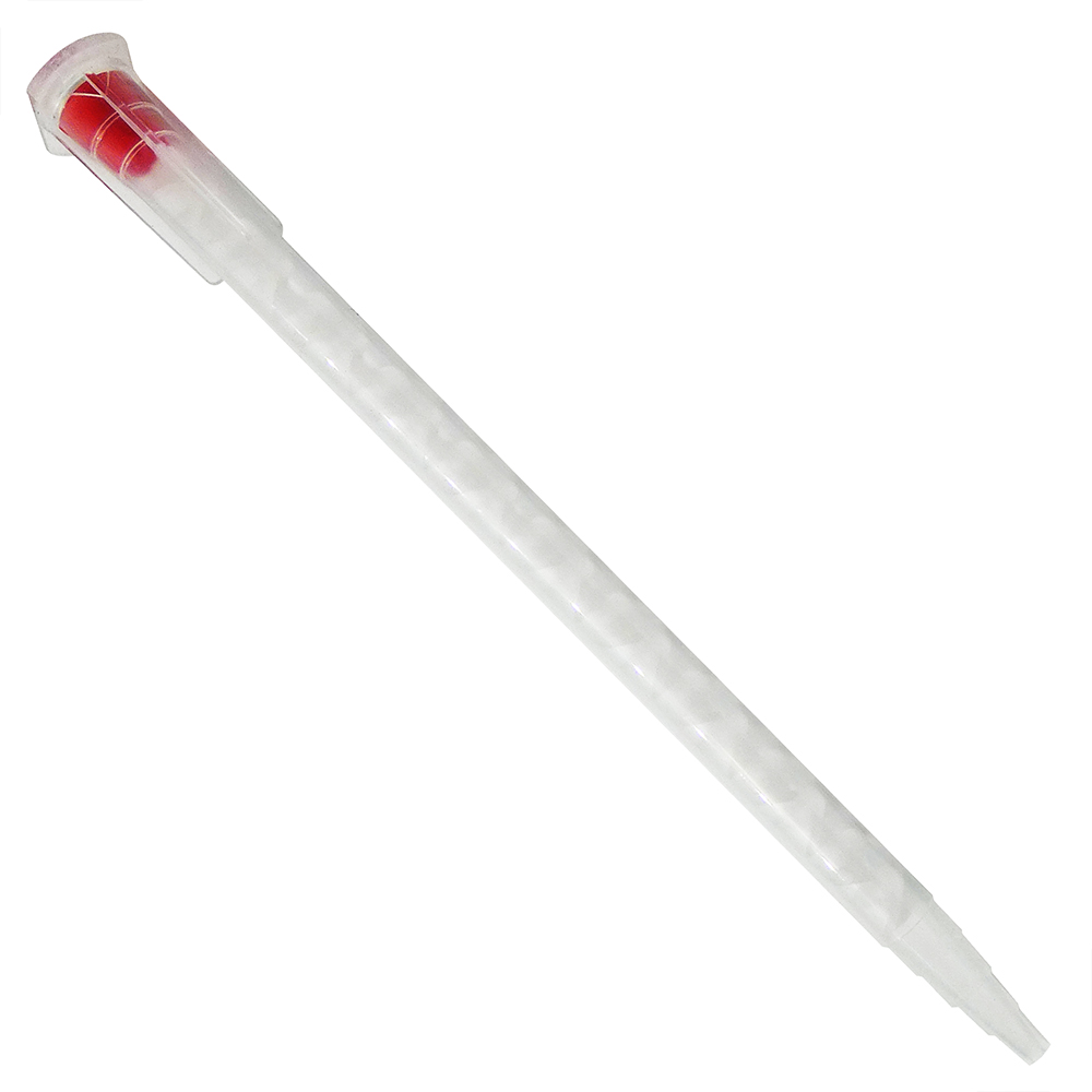 | Recommended for use in conjunction with Click Bond adhesive cartridges, the CB106 static mixing tip provides thorough mixing of adhesive components during dispensing, ensuring optimal adhesive consistency and bond strength. Designed to twist and lock onto the end of the Click Bond adhesive cartridge, Click Bond mixing tips provide not only proper interleaving of pre-ratioed components but additionally pre-phasing to ensure optimum mix uniformity. To prevent pre-mix of the adhesive, the tip integrates a barrier separating the individual adhesive components until they reach the integral mixer. If open time of adhesive in the mixing tip exceeds the adhesive pot life, the adhesive will become cured in the tip, preventing further dispensing. Removal of the used tip and replacement with a fresh tip is as simple as twisting to remove the cured tip, wiping off the end of the cartridge, and twisting a new tip in place. CB106 mixing tips are compatible with all Click Bond adhesives and can be used in place of the original cartridge cap when partially used cartridges are stored between applications. |