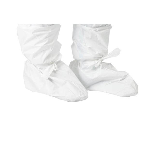 Dupont Tyvek 18" Disposable Skid Resistant Boot Covers is convenient slip-on protection. TyvekŪ fabric is very strong, but is nearly impossible for the average person to tear, but can easily be cut with scissors or other sharp objects. These Skid Resistant 18" high boot covers provide extra room and protection over low-rise shoe covers.