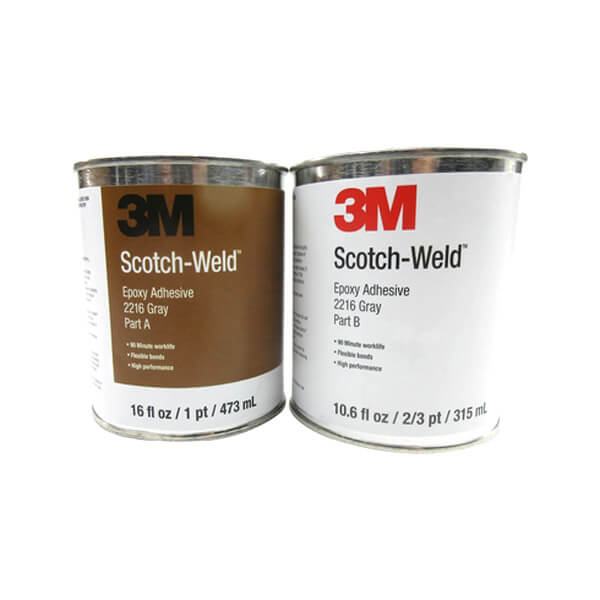 Quart| 3M™ Scotch-Weld™ Epoxy Adhesive 2216 B/A is a flexible, two part, room temperature curing epoxy with high peel and shear strength. Scotch-Weld epoxy adhesive 2216 B/A is identical to 3M™ Scotch-Weld™ Epoxy Adhesive EC-2216 B/A in chemical composition. Scotch-Weld epoxy adhesive EC-2216 B/A has been labeled, packaged, tested, and certified for aircraft and aerospace applications. Scotch-Weld epoxy adhesive 2216 B/A may be used for aircraft and aerospace applications if proper Certificates of Test have been issued and material meets all aircraft manufacturer’s specification requirements. |