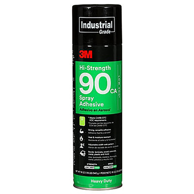 3M™ Hi-Strength 90 CA Spray Adhesive - Low VOC <25% is an extremely versatile, fast-drying spray adhesive that bonds strongly to a wide range of materials. The spray formula is easy to dispense and offers a variable-width spray pattern, applying directly onto surfaces and materials where needed. This permanent bond provides fast results to keep projects moving ahead.