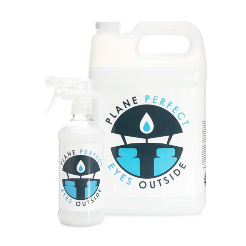 Eyes Outside is a revolutionary plastic cleaner and polish that has multiple uses. After watching pilots use other decades-old formulations we realized that we could do better. The soft plastics used on aircraft, motorcycles and boats are some of the most critical pieces and should be worshiped, not just wiped down. Eyes Outside is safe to use with plastics (including plexiglass, acrylic, acrylite, lucite and lexan), glass, or hard shiny surfaces (including COVID barriers). Its anti-static, fingerprint resistant and polishing properties are great for LCD screens, radio displays, glass cockpits, GPS, instrument gauges, convertible top windows, tinted windows, eye glasses, stainless steel (like your fridge), panel covers, yokes, motorcycle helmets, visors, ski goggles, dash clusters, cup holders, door pockets or any sensitive hard shiny surface (even grand pianos)! Eyes Outside will not only clean and polish the surface, it also protects from damage caused by aggressive wiping and repetitive cleaning. Eyes Outside is great for any marine/boat, motorcycle, car or aviation application. Directions: For best results and to avoid scratching, use a Plane Perfect Max Loop Glass microfiber Towel. Apply Eyes Outside liberally to the surface to be cleaned. Allow time for bugs to rehydrate. Wipe with clean towel in a single motion. Turn over towel to expose a clean section and once again use a single motion to dry to a high shine. For a heavy coating of bugs (or that one giant bug that swooped down into the center of your windshield on short final) repeat application on stubborn areas and allow more time for rehydration. For optimum results, do not allow Eyes Outside to dry on surface. |