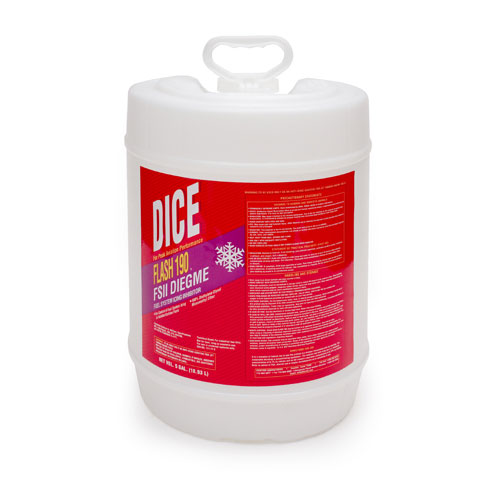 Dice Flash 190 Fuel System Icing Inhibitor prevents undissolved water molecules from freezing in jet fuel, which would result in blockage of fuel lines and possibly engine failure. Meets U.S. Military specifications MIL-DTL-85470B and ASTM STANDARD D4171. Pure DIETHYLENE GLYCOL MONOMETHYL ETHER, “carbitol”. DICE Flash 190 is the identical chemical formulation utilized by the United States Air Force turbine fleet. This chemical replaces ethylene glycol monomethyl ether as a less toxic and non-hazardous fuel system icing inhibitor. Comparable to Prist. |