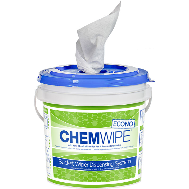| A disposable wipes and bucket cleaning system that allows end-users to add their own chemical to create a custom pre-moistened wipe. The MIGHTYWIPE® material, made from a cellulose and synthetic base, has excellent strength and absorbency with low lint properties, providing an ideal material for heavy-duty cleaning, wiping, degreasing and surface prep. |