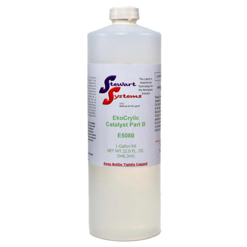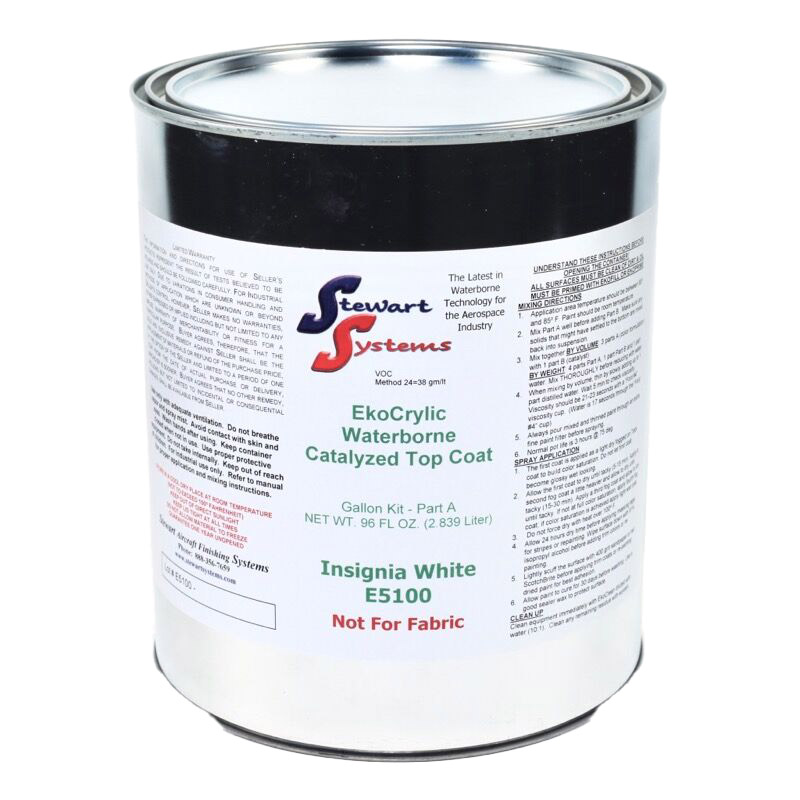 EkoCrylic (includes catalyst) is a waterborne, catalyzed, acrylic urethane topcoat that is formulated specifically for metal and composite aircraft with extreme durability and gloss that does not fade with age. Similar to other catalyzed urethane topcoats on the market, EkoCrylic produces a very high gloss finish that is very durable and resistant to solvents including fuel and even MEK. However, EkoCrylic is not hazardous, flammable, or harmful to the environment which greatly reduces the health hazards and safety equipment requirements for spray applications. As with all Stewart Systems products, cleaning out the paint gun and mixing containers is done in the sink with water and EkoClean – no solvents.