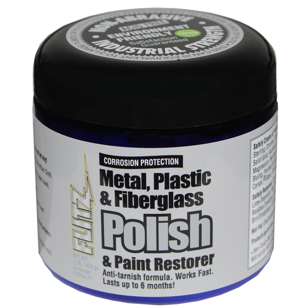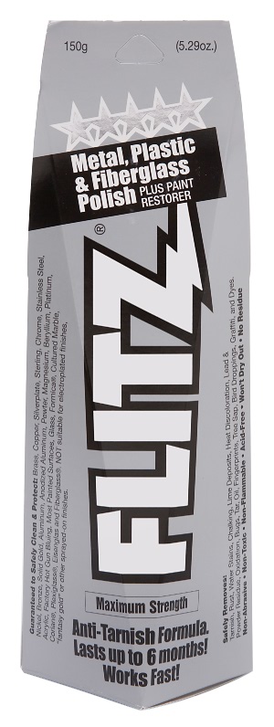 | Flitz is a non-abrasive metal polish which can be used on all metal surfaces including polished aluminum, painted surfaces, and fiberglass. Removes exhaust burned soot on paint. It is easy to apply and remove, and leaves a protective film to protect shiny surfaces up to 4 months A very popular multi-purpose polish. |